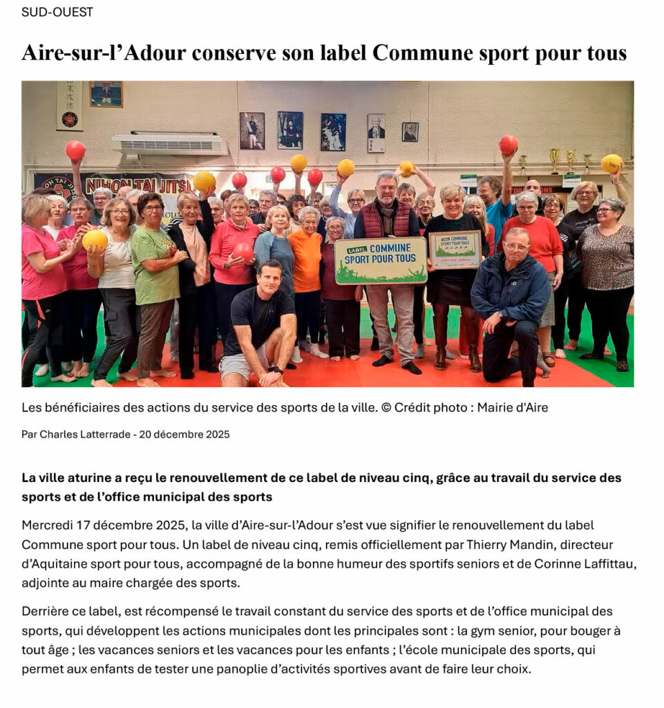 • Aire-sur-l’Adour conserve son label Commune sport pour tous